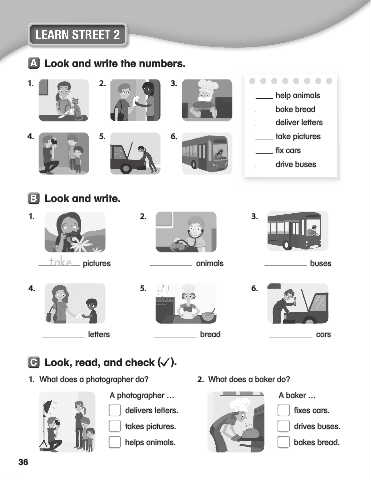 1. What does a photographer do? 2. What does a baker do?
