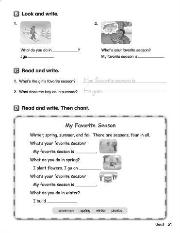 1. What’s the girl’s favorite season? Her favorite season is .