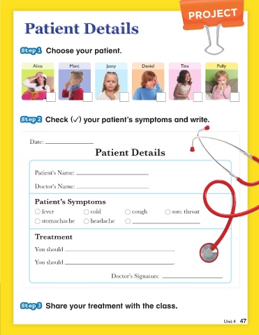 Step 2 Check ( ) your patient’s symptoms and write.