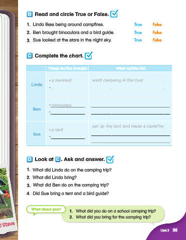 1. What did Linda do on the camping trip?