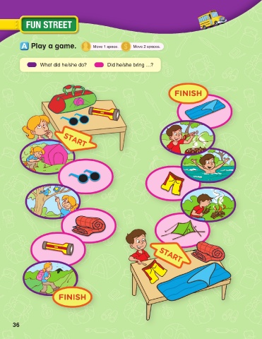 Play a game. Move 1 space. Move 2 spaces. What did he/she do? Did he/she bring …? 36 2021. 4. 26. 오후 5:56 L6_U3,4_2021.indd 36 2021. 4. 26. 오후 5:56 L6_U3,4_2021.indd 36