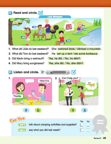 Unit 3 talk about camping activities and supplies? Sticker