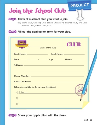 ex.) Tennis Club, Cooking Club, School Orchestra, Science Club, Art Club,