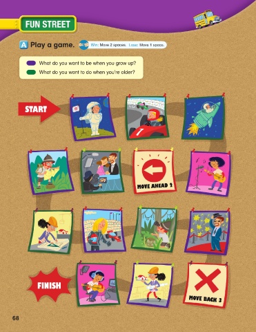 Play a game. Win: Move 2 spaces. Lose: Move 1 space. What do you want to be when you grow up? What do you want to do when you’re older? 68 2021. 4. 26. 오후 5:45 L6_U5-8_2021.indd 68 L6_U5-8_2021.indd 68 2021. 4. 26. 오후 5:45