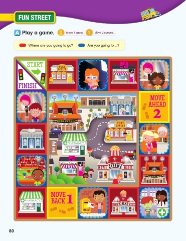 Play a game. Move 1 space. Move 2 spaces. Where are you going to go? Are you going to ...? 80 2021. 4. 26. 오후 5:47 L6_U5-8_2021.indd 80 2021. 4. 26. 오후 5:47 L6_U5-8_2021.indd 80