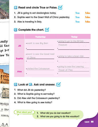 2. Sophie went to the Great Wall of China yesterday. True False